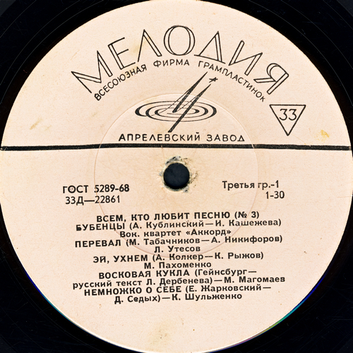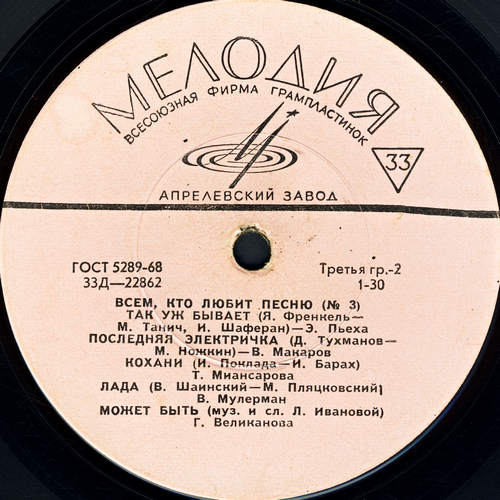 ВСЕМ, КТО ЛЮБИТ ПЕСНЮ (№ 3) (Сторона 1) 33Д-22861