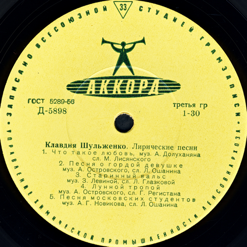 Пластинка Гранд 33⅓ об/мин Д-5898 / Д-5899 - Клавдия Шульженко. Лирические песни |